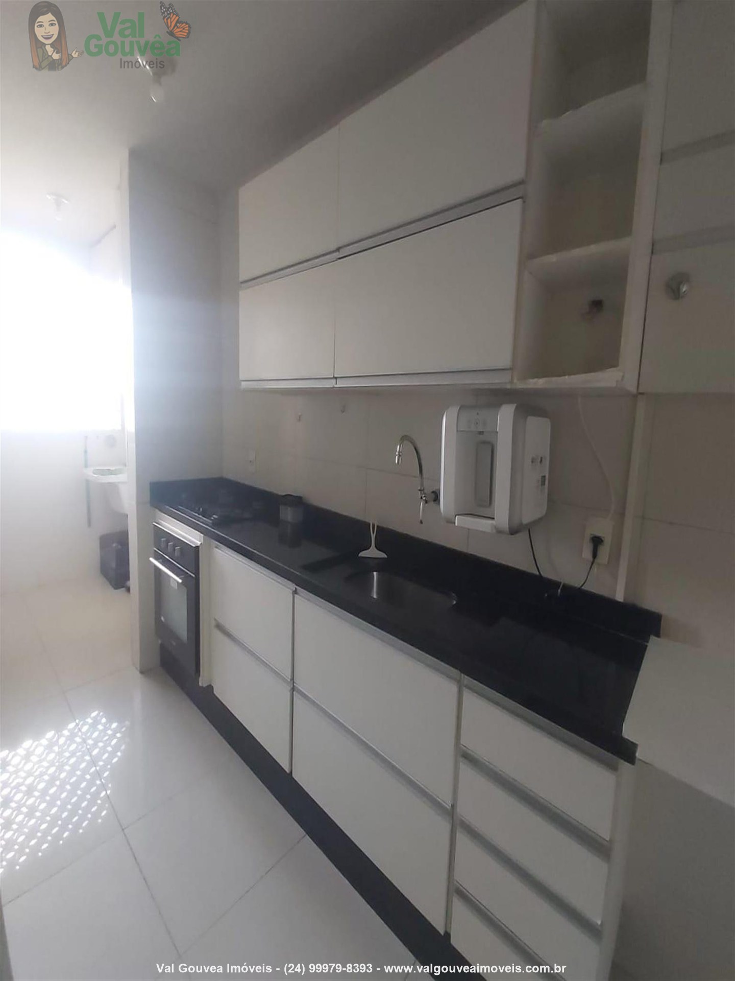 Persianas, ventiladores, cooktop, forno, bebedouro e armários planejados nos quartos, cozinha e banheiros.